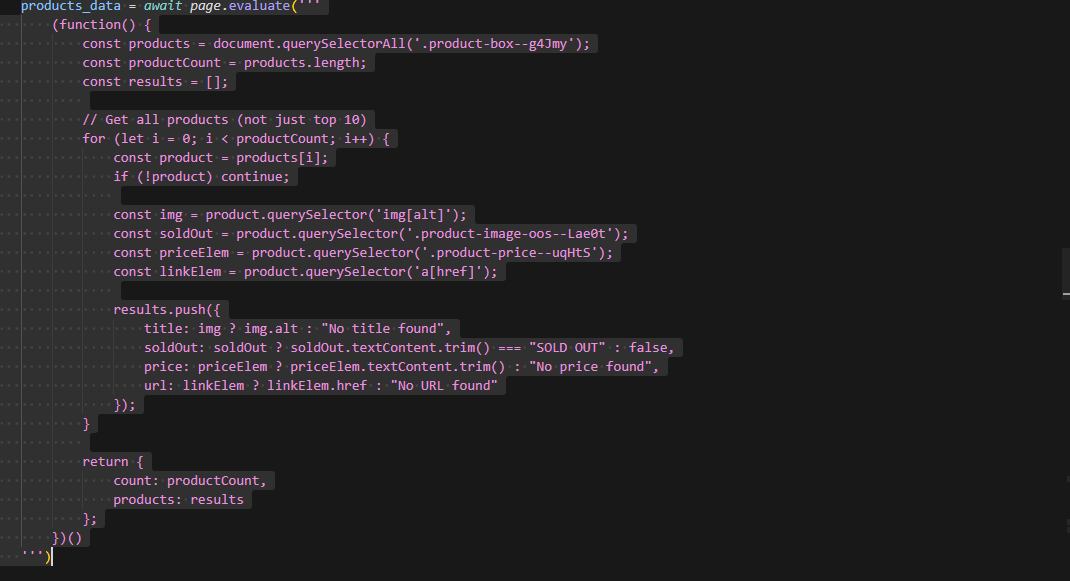 Inspected the page in DevTools, tested selectors in the console, and confirmed the selector counts matched the products shown on the page.